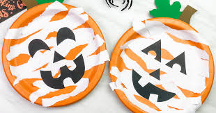 25.Jack O’Lantern paper plate fall craft– Use an orange plate or paint a plate orange, then rip pieces of white paper and glue them on the plate with a hot glue gun or Elmers glue. Cut out a face with the stencils in the list below, or create your own if you can! Glue on the stem and leaf from styrofoam cut outs.