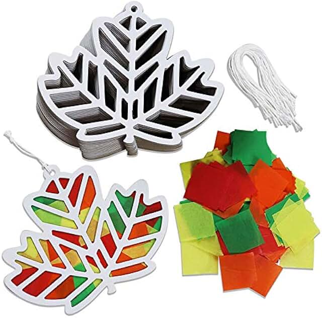 4.Leaf sun-catchers This fun sun- catcher comes with paint, beads and paintbrushes. You can use them all or save some to paint with friends. But either way this is a great fall craft to keep your kids busy. Plus when they are done, they can get hung on the window to catch that sun!