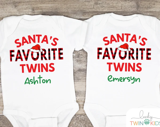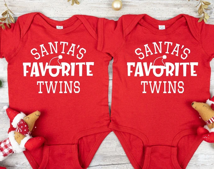 Santa’s Favorite Twins Onesies Dress this up with leg warmers, tutus and bows or simplify it with pants. You can add a Santa hat too!