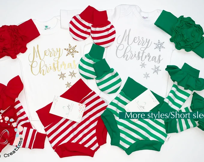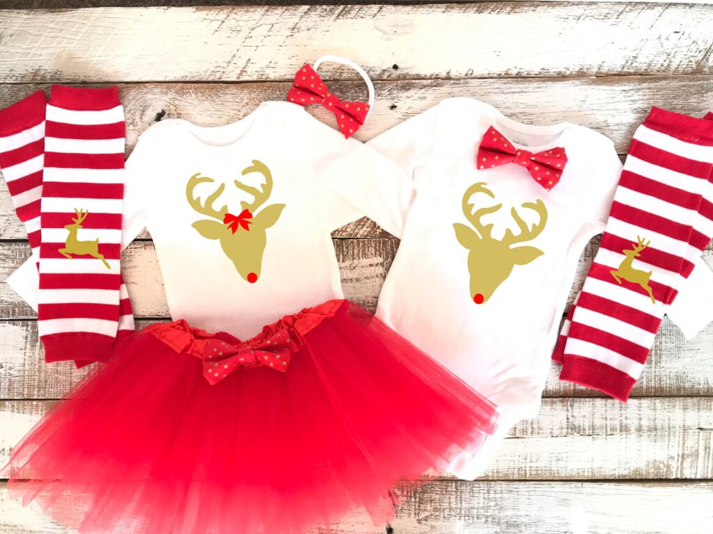 Merry Christmas Girl Twins Matching Outfit This adorable matching Christmas outfit is perfect for your twins first Christmas. It comes with many choices so you don’t have to look anywhere else.