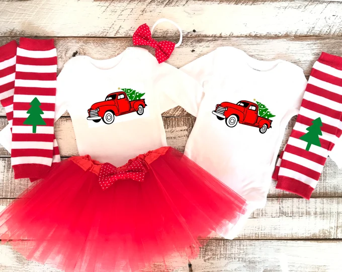 Vintage Christmas Truck This vintage Christmas outfit is a perfect fit for boy/girl twins.