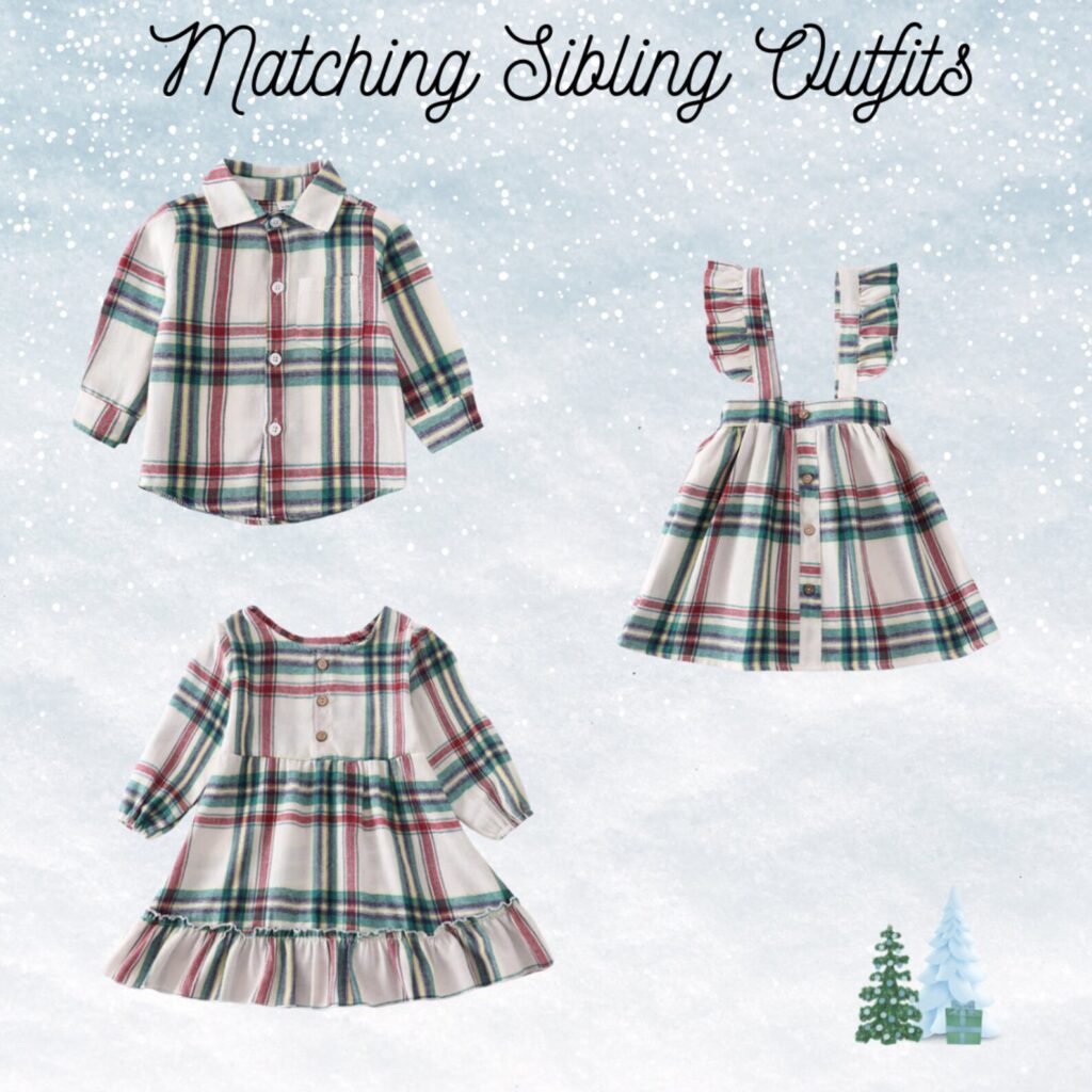 2.These Holiday Plaid Matching Outfits can be for girl twins, boy twins or boy/girl twins. There are so many choices with this combo, so feel free to buy matching ones for any siblings as well. There are also matching bows for added accessories.